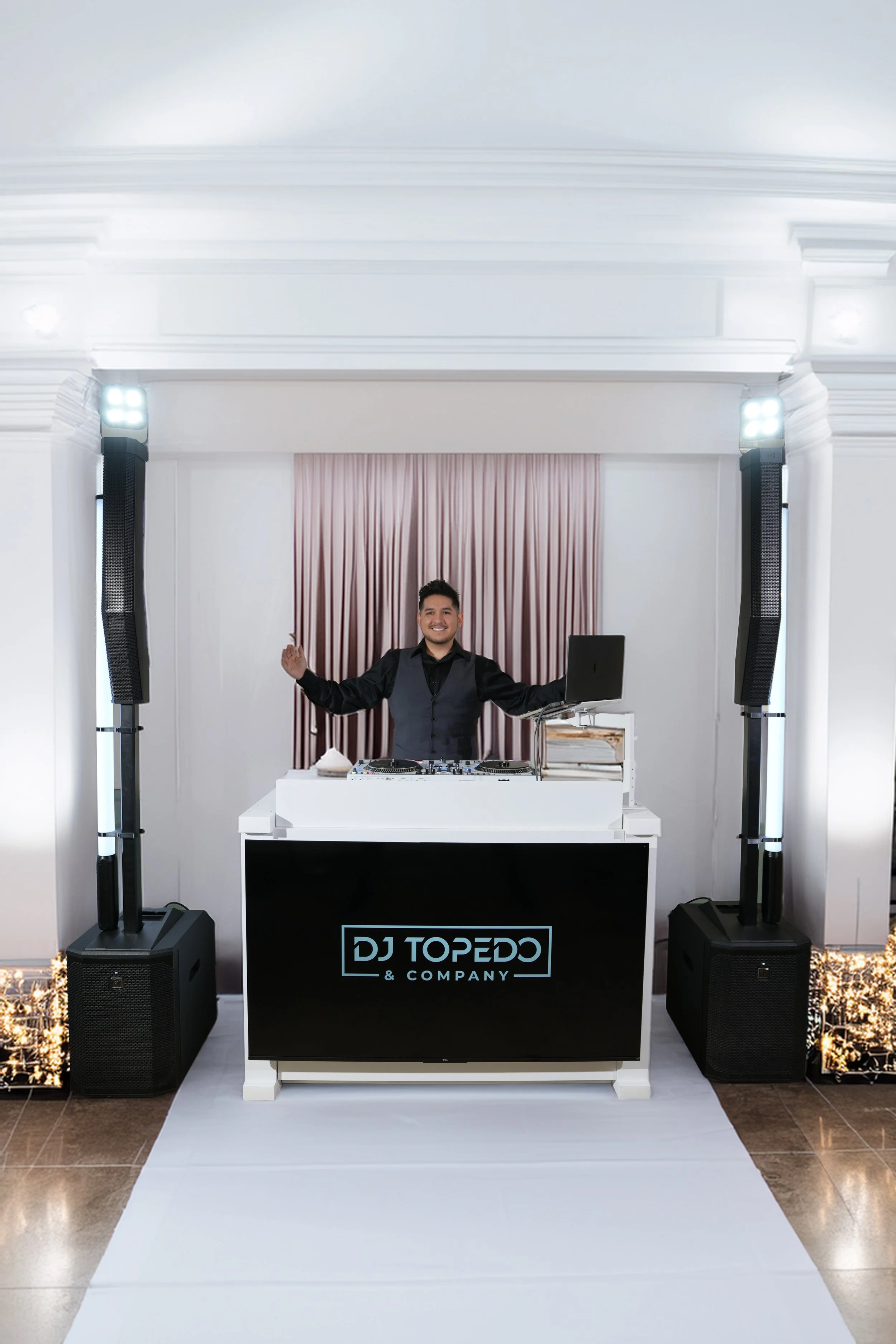 What you get: DJ Topedo himself—owner, headlining DJ, and creative force behind DJ Topedo & Company—delivering elite-level mixing, high-energy MC performance, and his signature premium display booth. Ideal for couples who want a truly unforgettable wedding experience.