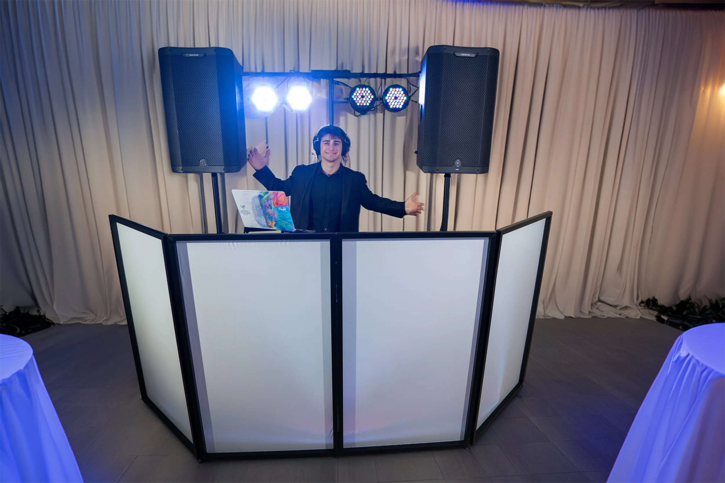 What you get: one of our most in-demand DJs, dynamic crowd reading, elevated MC presence, and a visually upgraded DJ booth designed to enhance your reception atmosphere. Ideal for couples who want a packed dance floor and a stylish, high-energy celebration.